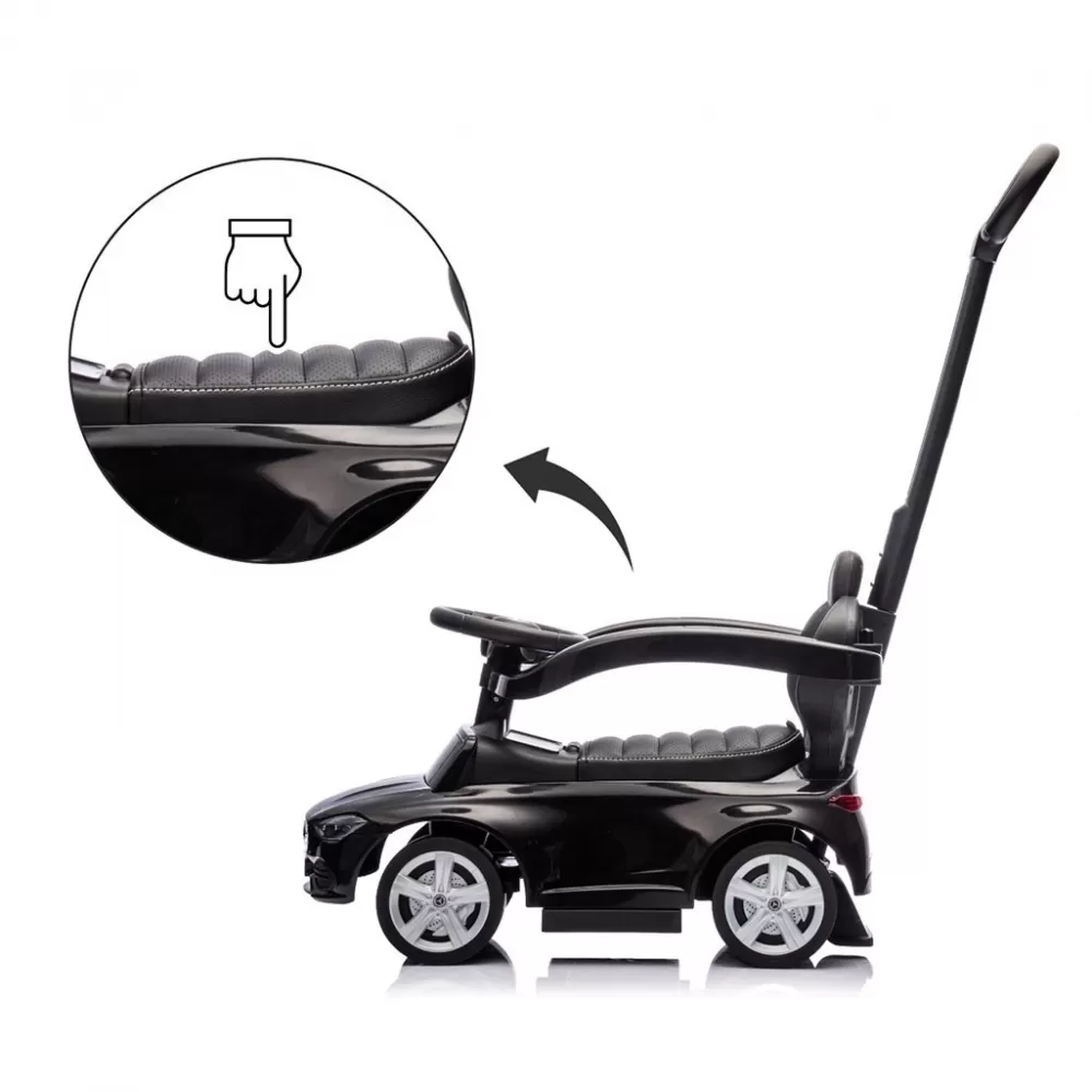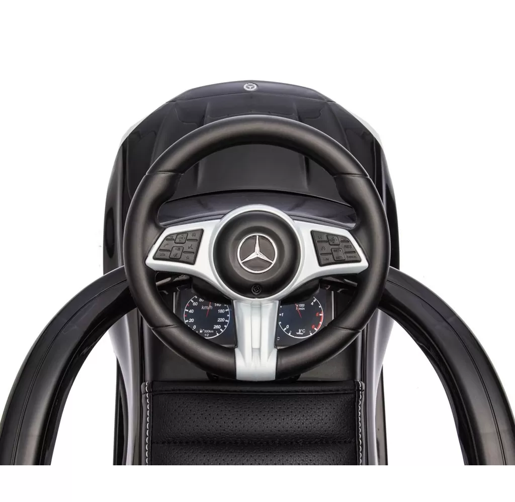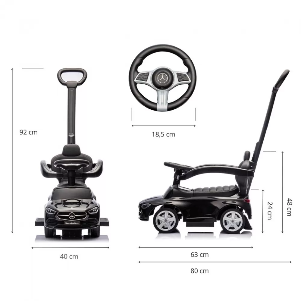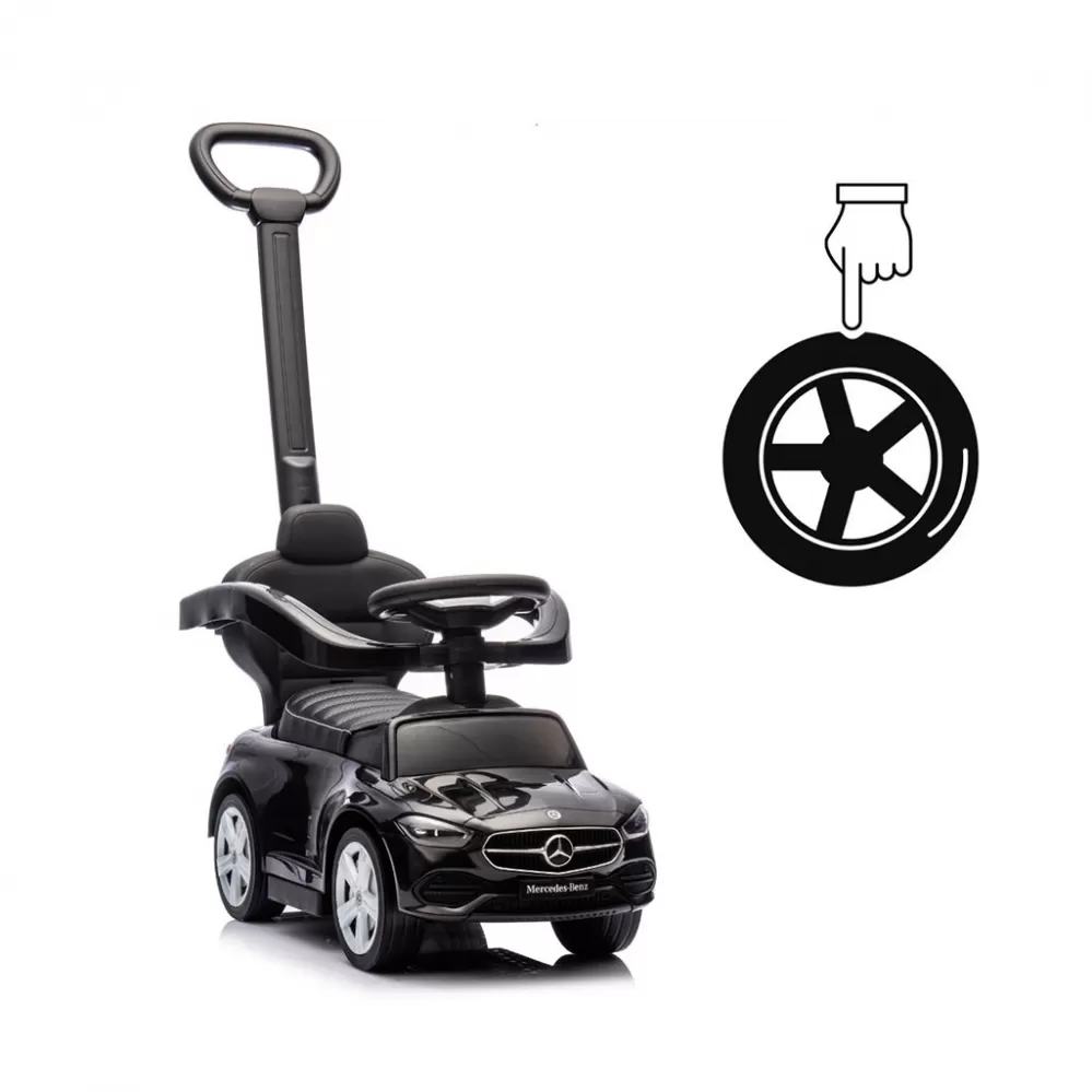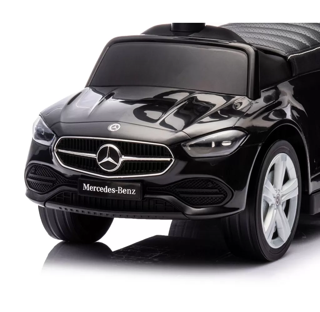 Realistický design inspirovaný modelem Mercedes C-Class zaujme detaily jako elegantní provedení, gumová kola, logo značky, volant se zvuky a "přístroje," což podporuje dětskou představivost a umožňuje kreativní hru.