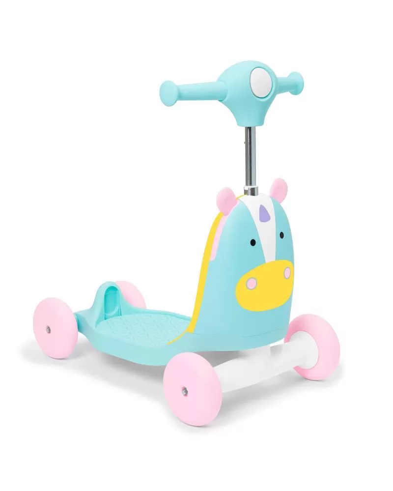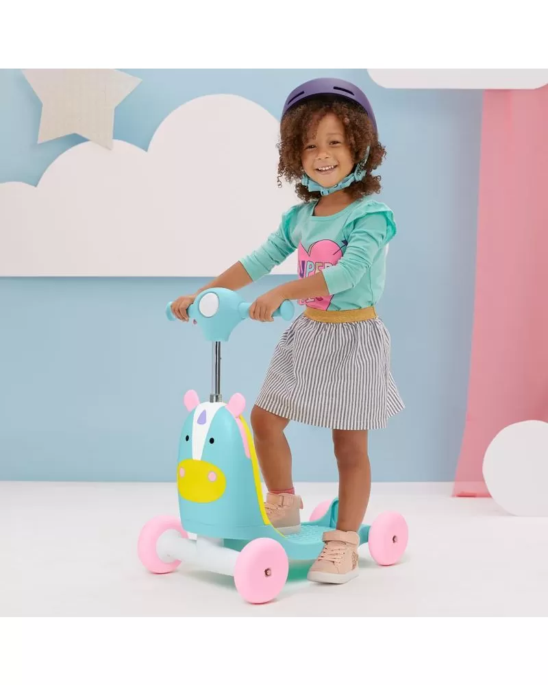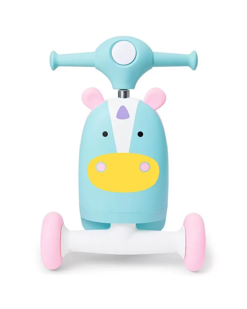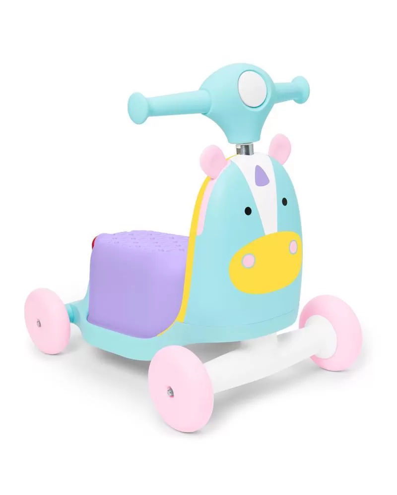 Roztomilé barevné odrážedlo v motivu zvířátka z kolekce Zoo bylo navrženo tak, aby rostlo s Vaším děťátkem ve třech etapách. Odrážedlo nabízí zábavný způsob, jak povzbudit rozvoj motorických dovedností, rovnováhu a koordinaci děťátka během hraní. První etapa je určena pro začínající chodce. Motivuje nejmenší k tomu, aby tlačily nebo táhly odrážedlo, které je ve formě vozíku. Skvělé místo pro oblíbené hračky. Ve druhé etapě se úložný vozík změní na sedadlo a stává se z něj funkční odrážedlo. Jste připraveni na třetí etapu? Stačí vyndat sedadlo a vytáhnout nastavitelnou rukojeť pro Vaše děťátko. Jízda na koloběžce může začít. Zábavu znásobí tlačítko na přední straně pro světlomety, melodie a různé zvukové efekty.