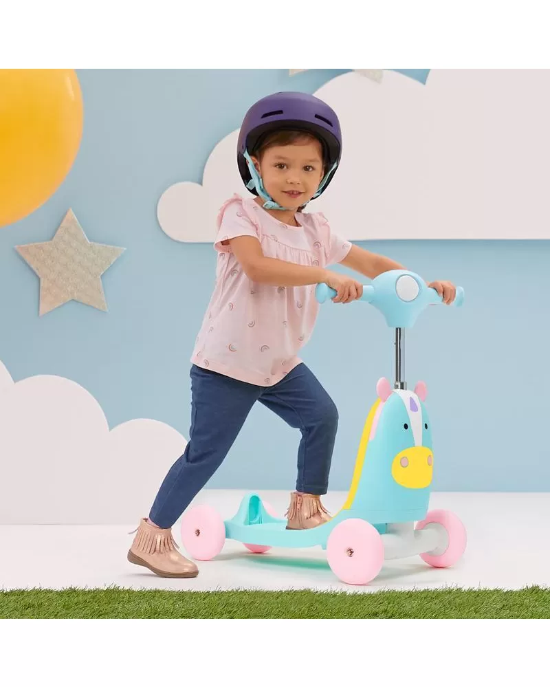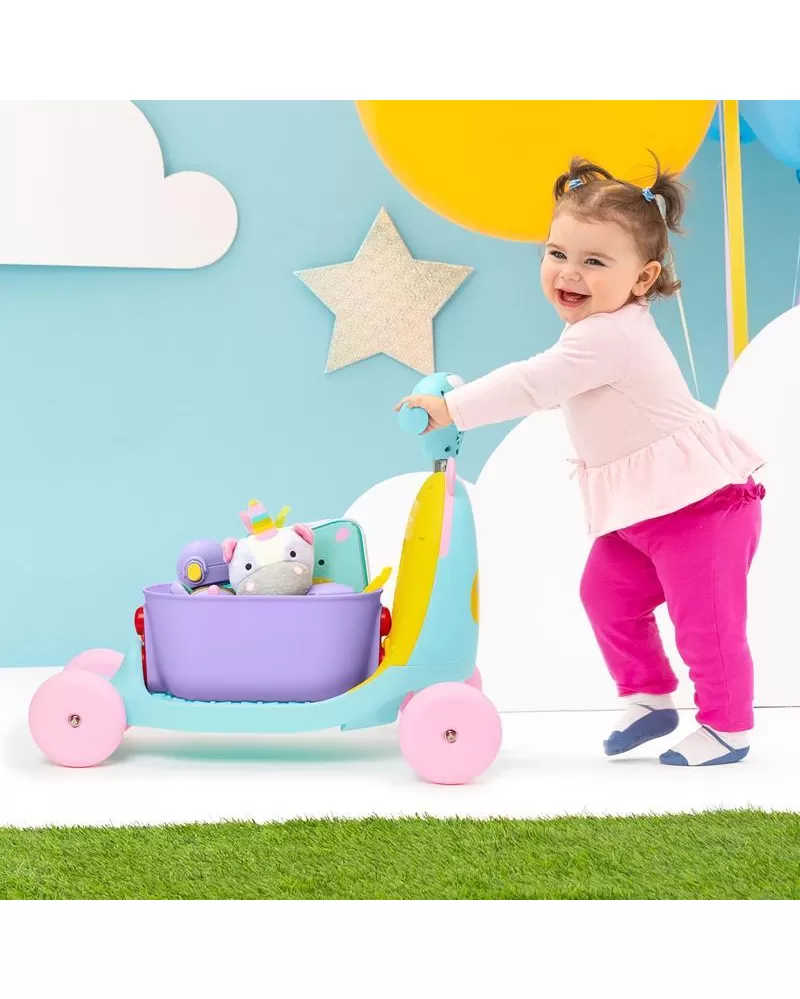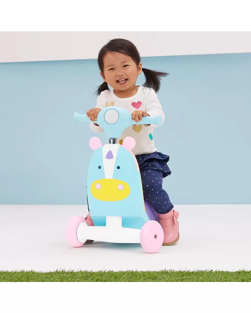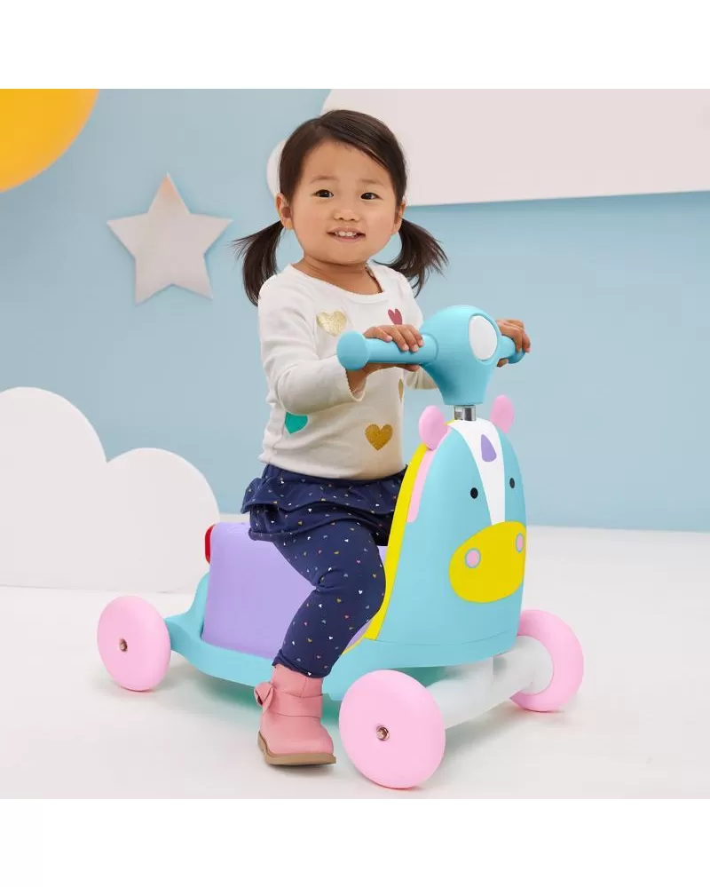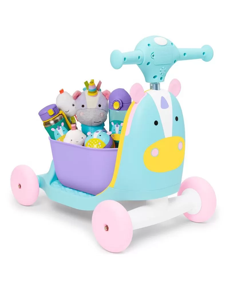 Roztomilé barevné odrážedlo v motivu zvířátka z kolekce Zoo bylo navrženo tak, aby rostlo s Vaším děťátkem ve třech etapách. Odrážedlo nabízí zábavný způsob, jak povzbudit rozvoj motorických dovedností, rovnováhu a koordinaci děťátka během hraní. První etapa je určena pro začínající chodce. Motivuje nejmenší k tomu, aby tlačily nebo táhly odrážedlo, které je ve formě vozíku. Skvělé místo pro oblíbené hračky. Ve druhé etapě se úložný vozík změní na sedadlo a stává se z něj funkční odrážedlo. Jste připraveni na třetí etapu? Stačí vyndat sedadlo a vytáhnout nastavitelnou rukojeť pro Vaše děťátko. Jízda na koloběžce může začít. Zábavu znásobí tlačítko na přední straně pro světlomety, melodie a různé zvukové efekty.