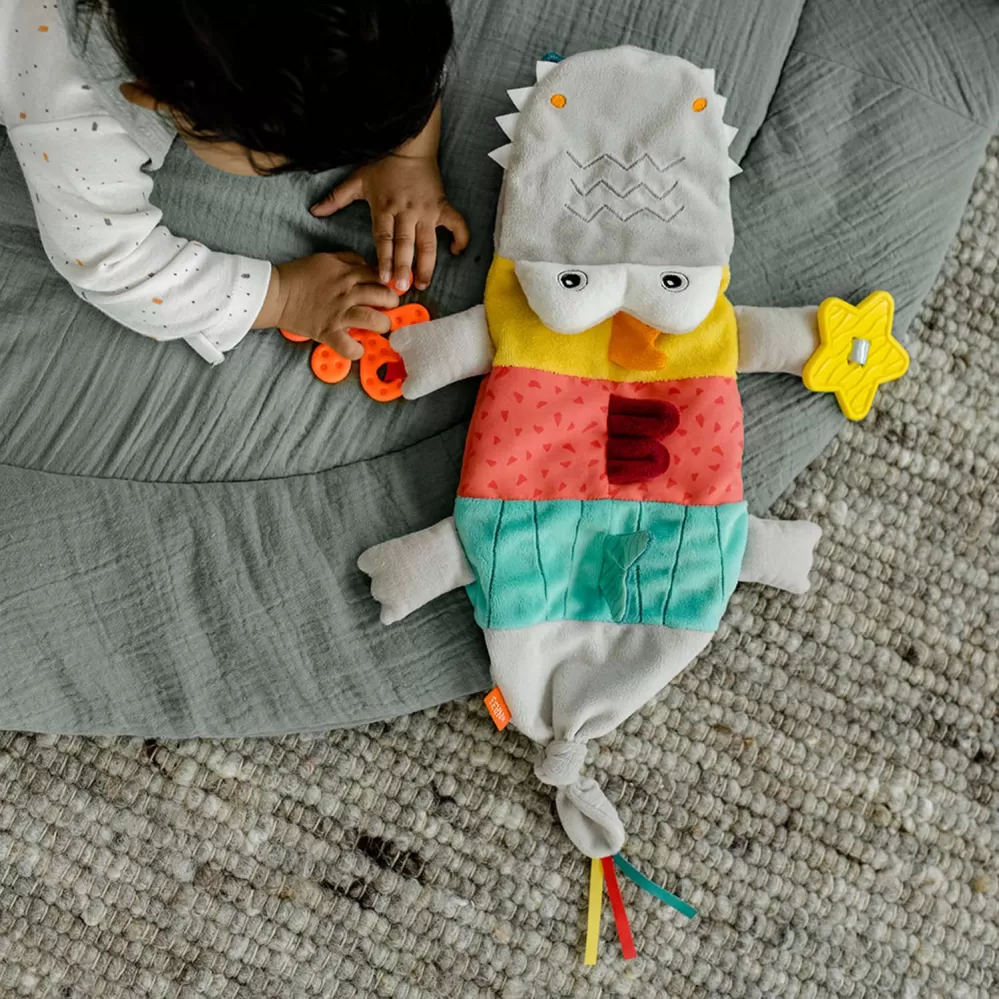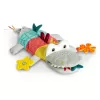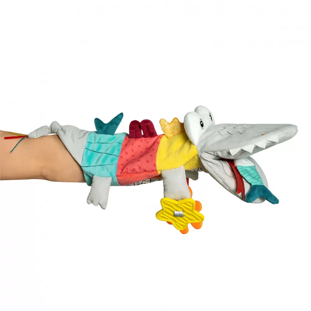 S látkovým maňáskem krokodýla je zábava z hraní zaručena. Chrastítka, praskací papír spolu s pestrými barvami vzbuzují dětskou zvědavost a hravou formou podporují smysl pro zrak, sluch, motoriku a vnímání a zároveň měkká kousátka pomáhají při prořezávání zoubků. Pro intenzivní kontakt mezi rodiči, prarodiči nebo sourozenci a dítětem.