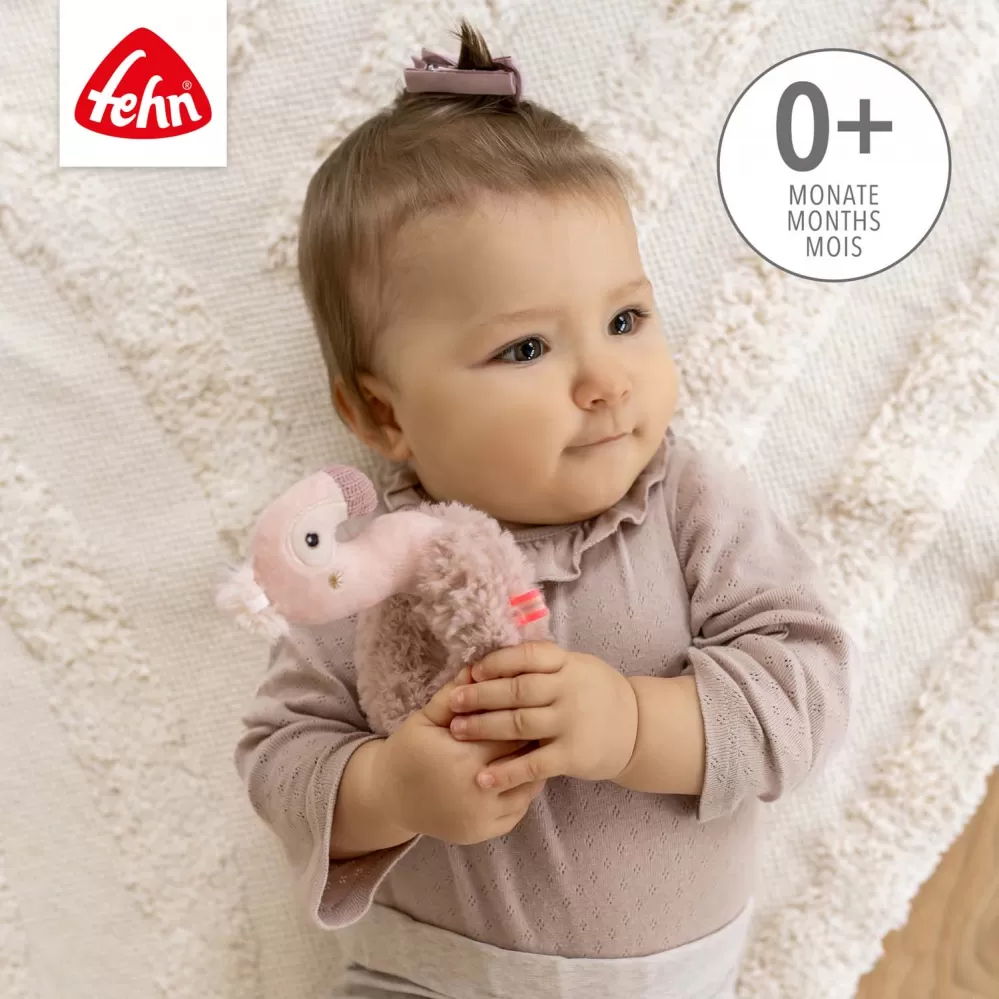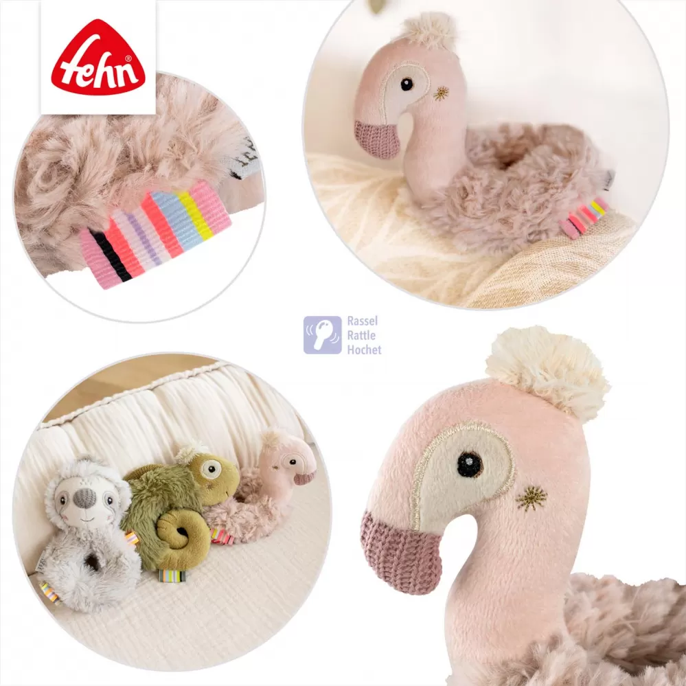 Plyšový chrastící kroužek Plameňák z kolekce Lazy, Crazy & Pink hravou formou stimuluje sluch, hmat a úchop dítěte. Díky zajímavým strukturám a podnětným zvukům zabudovaného chrastítka se miminko s touto hračkou nikdy nebude nudit.