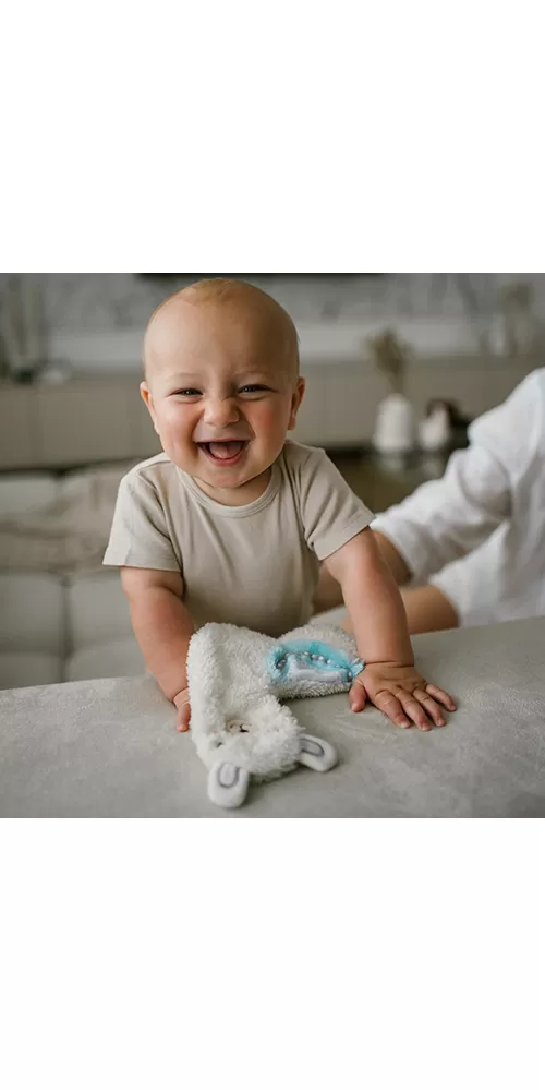 Seznamte se s lamou Lulu, plochou plyšovou hračkou s měkkou srstí, která je ideální k mazlení. Šustění ovlivňuje sluch. Různé textury rozvíjejí jemnou motoriku miminka. Usmívající se tvář a barevná deka upoutají pozornost dítěte. Přátelská bavlna: - Je vhodná pro miminka od prvních dnů jejich života. Stimulující zvuky: - Šustění podporuje růst jemné motoriky miminka a má relaxační vlastnosti. Vývoj zraku: - Přitahuje pozornost děťátka a stimuluje jeho zrak. Technické vlastnosti: - Materiál: bavlna - Stáří miminka: 0 m+ - Rozměry: 16 cm x 23 cm Bezpečnostní informace: - Odstraňte z hračky všechny bezpečnostní prvky, které mohou být pro dítě nebezpečné. - Před každým darováním hračky dítěti zkontrolujte její kvalitu. Pouze nepoškozená hračka zaručí vašemu dítěti bezpečné používání. Hračku zlikvidujte, jakmile zpozorujete první známky poškození. - Doporučuje se hrát pod dohledem dospělé osoby. - Hračka splňuje normu EN 71. - Doporučujeme, abyste si obal odložili pro referenci. - Balení uchovávejte mimo dosah dětí. - Obal a spojovací prvky nejsou hračkou a mohou představovat zdravotní riziko pro dítě. Dodavatel: Babyono sp. z O.O., Kowalewicka 13, 60–002 Poznań, Poland. +48 61 83 90 520, info@babyono.pl, www.babyono.com Dodavatel: ags 92, s.r.o., Drahobejlova 2515/18, 190 00 Praha Česká republika info@petiteetmars.com