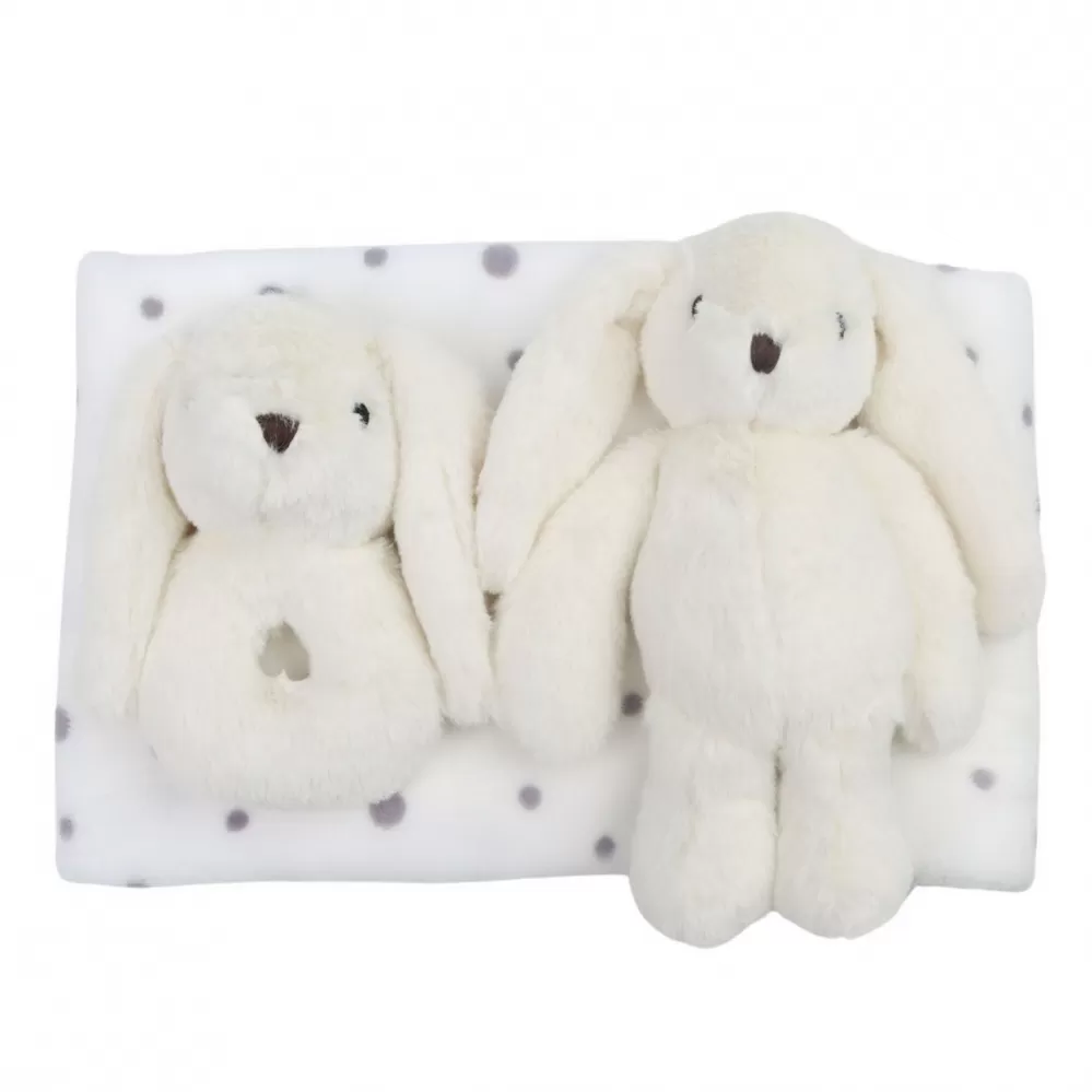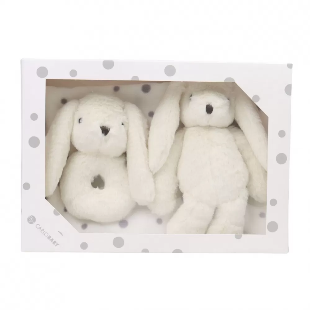 CARLO BABY Dárková sada s králíčkem, chrastítkem a dekou Bílá