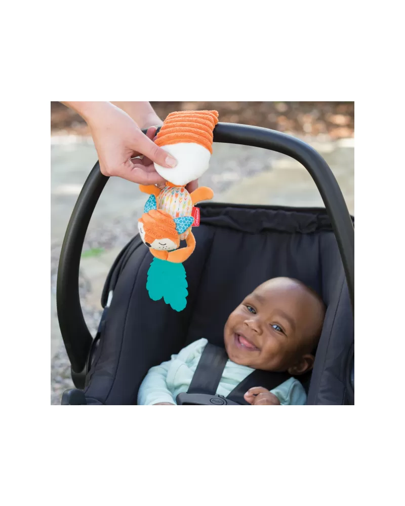 Plyšová hračka v podobě roztomilého lišáka zabaví vaše dítě na cestách v kočárku či autosedačce. Zatáhněte za kousátko a sledujte spolu s dítětem, jak lišák vibruje! Pozornost dítěte upoutají i výrazné barvy a různorodé textury ke zkoumání.