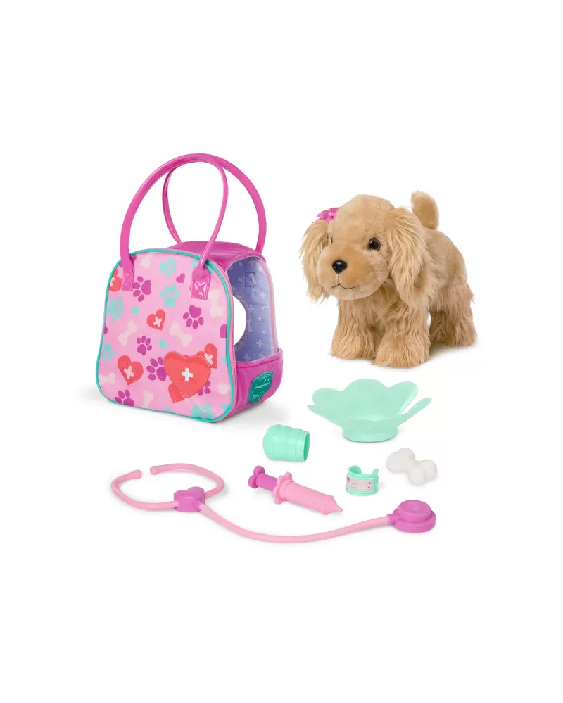 Obsah balení: kabelka, plyšové štěně, 6 veterinářských doplňků