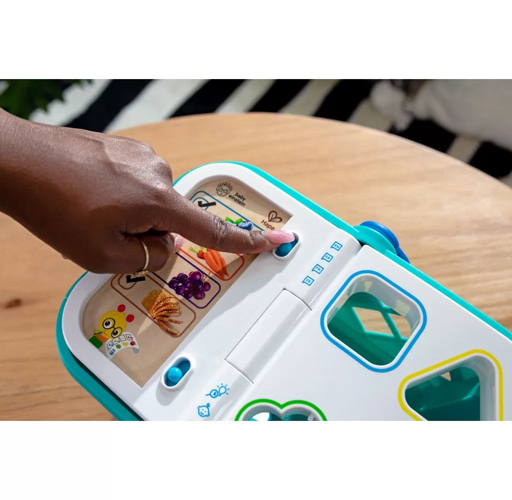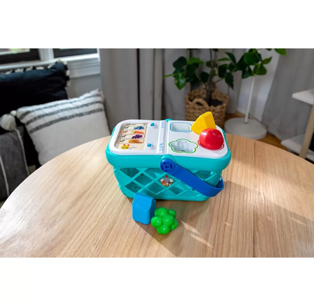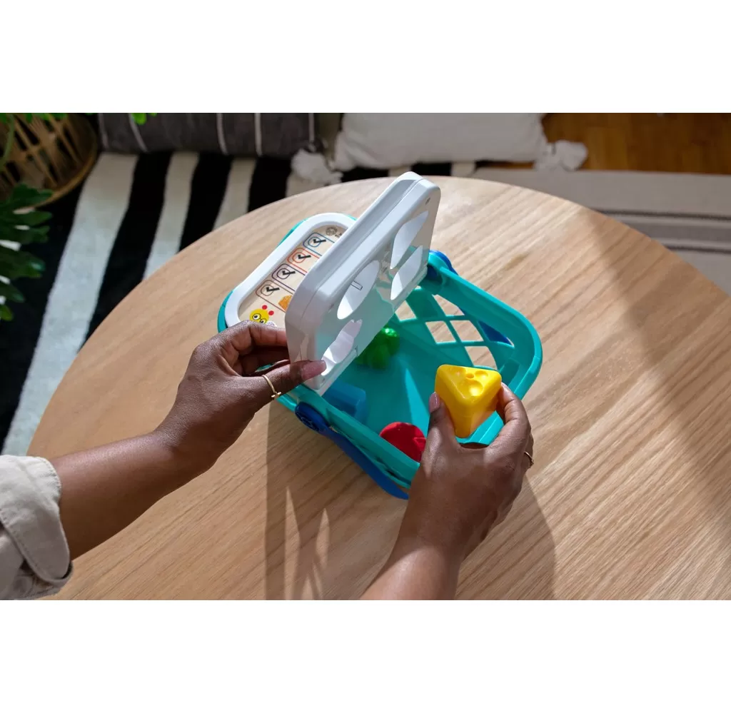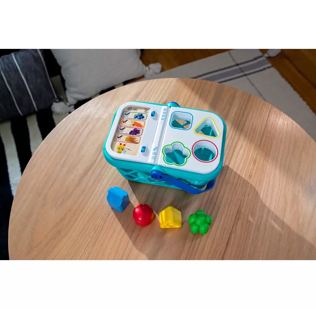 - Pomozte dítěti naučit se skutečné koncepty, jako jsou tvary, barvy a potraviny, s nákupním košíkem od Baby Einstein Magic Touch.