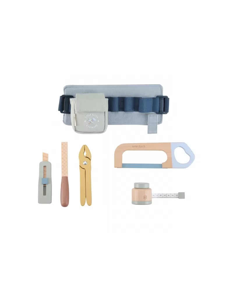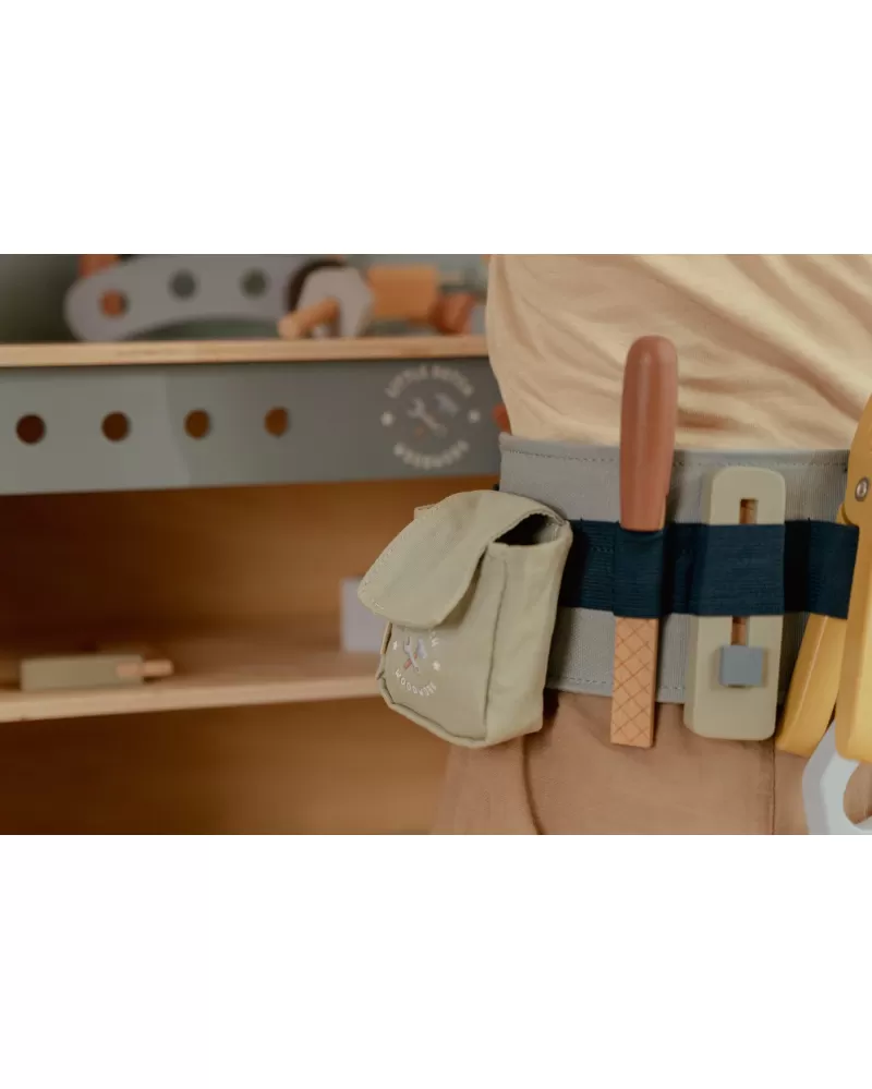 Díky pásku s úchyty na nářadí bude mít váš malý opravář všechny své nástroje vždy po ruce. Své místo na opasku má metr, kleště, řezáček na krabice, pilka i pilník.