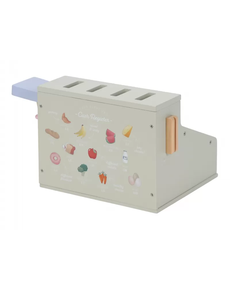 Děti si mohou procvičit základní počty a rozvíjet finanční gramotnost hrou, zatímco obsluhují zákazníky, skenují zboží a vystavují účtenky. Ideální doplněk k dalším dřevěným herním sadám, jako je kávovar, čajová souprava nebo dětský obchůdek.