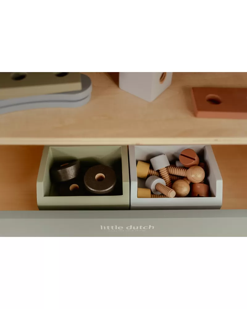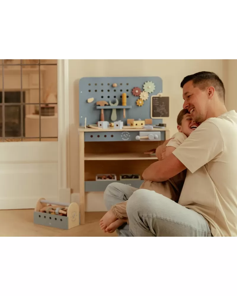 Malé děti milují napodobování svých rodičů při jejich činnostech a tento ponk s nářadím jim umožní sestavit a zkonstruovat různé věci, zrovna jako to umí jejich rodiče! Aktivitou při šroubování a sestavování částí dohromady a jejich opětovnému rozpojování se učí jemné motorice a soustředění, kreativitě a představivosti. Skvělý způsob, jak dětem nabídnout kreativní prostor pro tvoření a objevování.
