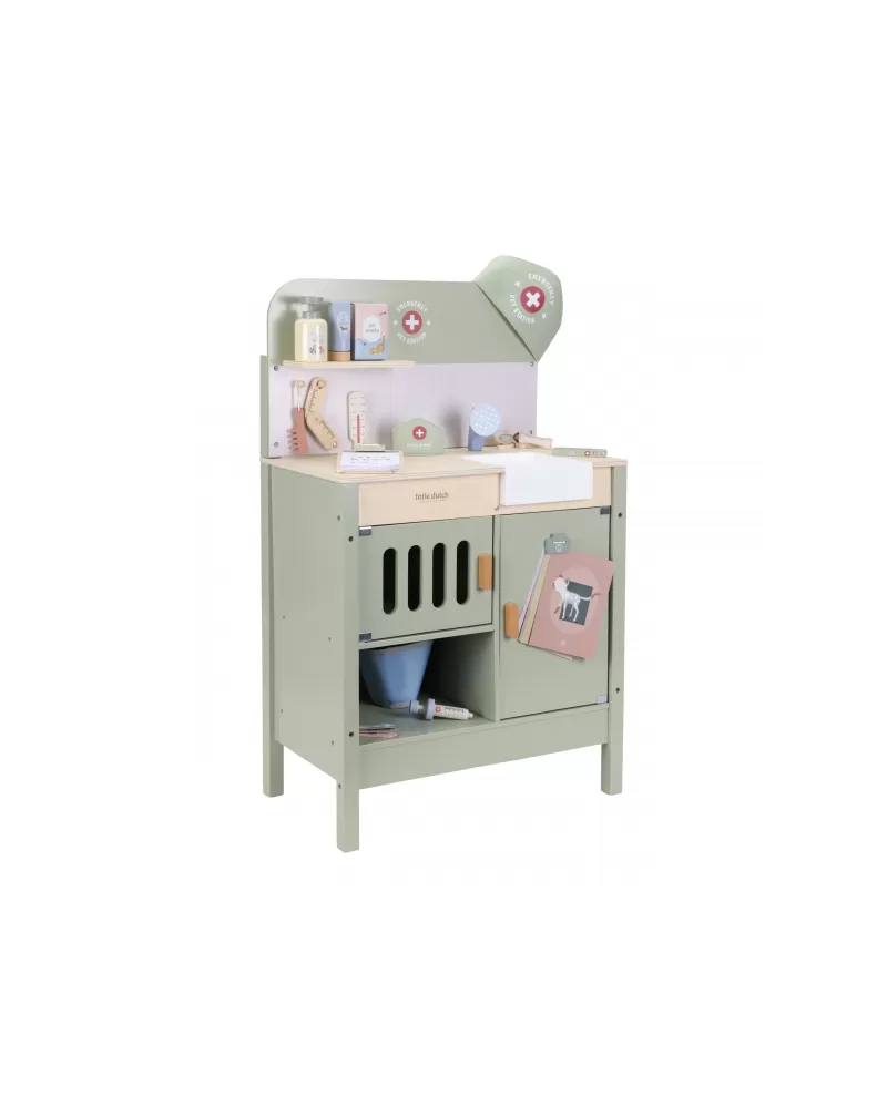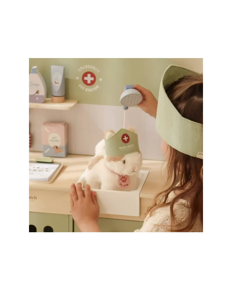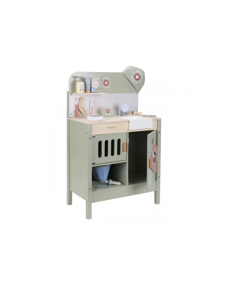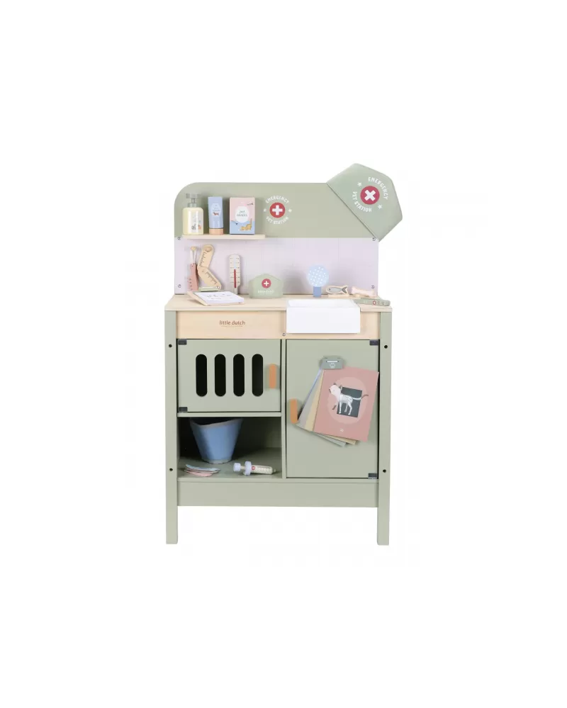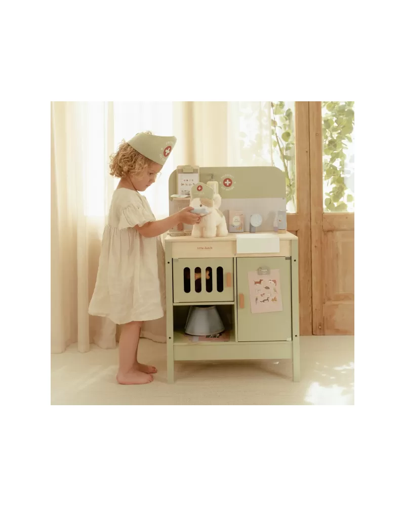 Dřevěná veterinární ordinace Little Dutch je skvělým dárkem pro děti, které milují zvířátka a péči o ně. Díky realistickým doplňkům se malí ošetřovatelé snadno ponoří do světa péče o nemocné mazlíčky. Připravte se na spoustu příběhů ze života plyšových zvířátek a nekonečné hodiny zábavného hraní!