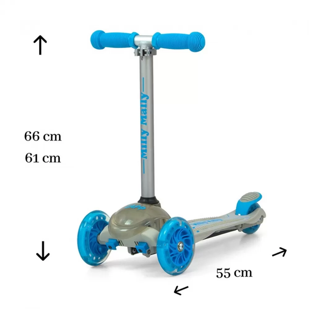 Abychom vyhověli potřebám našich malých závodníků, vytvořili jsme koloběžku ZAPP. Je ideálním řešením pro aktivní děti, které mají rády pohyb. Zapp je vyroben z kvalitních materiálů, je ideální na procházky nebo řádění kolem domu. Kovová konstrukce zaručuje odolnost výrobku. Koloběžka má navíc brzdu a blatník na zadním kolečku. Řízení a zatáčení pracuje na principu změny rovnováhy těla. Velkou výhodou koloběžky jsou 3 kola, které poskytnou stabilitu a bezpečnost. Děti potěší také, svítíci přední kola během jízdy.