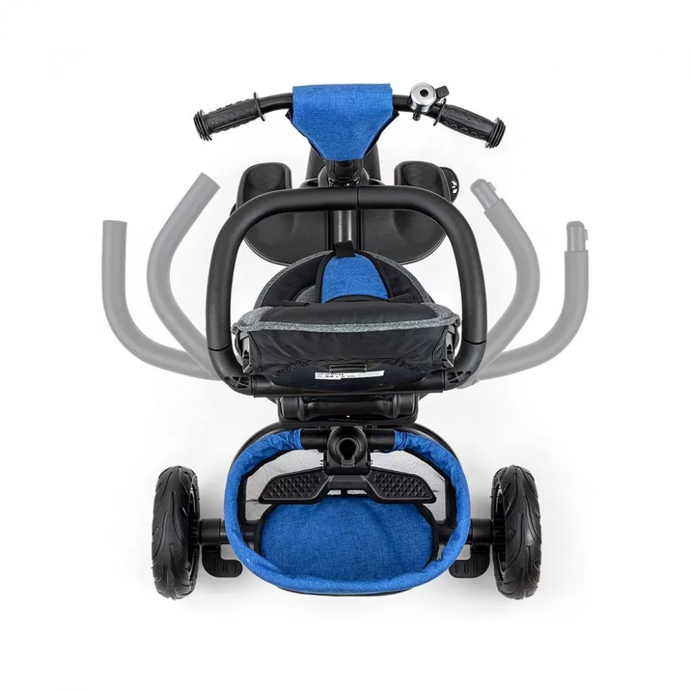 Je vyrobena z kvalitních a odolných materiálů. Má moderní konstrukci, pohodlné a ergonomicky tvarované sedadlo, které je otočné o 360 stupňů, což umožní dítěti cestovat ve směru nebo proti směru jízdy. O pohodlí a bezpečí během jízdy se stará bariérka, tříbodové bezpečnostní pásy, pohodlné stupačky nebo gumová kola, které skvěle absorbují rázy a poskytují dobrou přilnavost. Tříkolku může ovládat jak dítě, tak i rodič pomocí nastavitelné rukojeti pro tlačení. Po odebrání vodící tyče, sklápěcí stříšky, která chrání před sluncem nebo ostatních komponent bude sloužit jako tříkolka. Tříkolku lze používat rovněž jako alternativu golfového kočárku. Pro uložení hraček nebo potřeb pro dítě je zde praktický úložný košík.