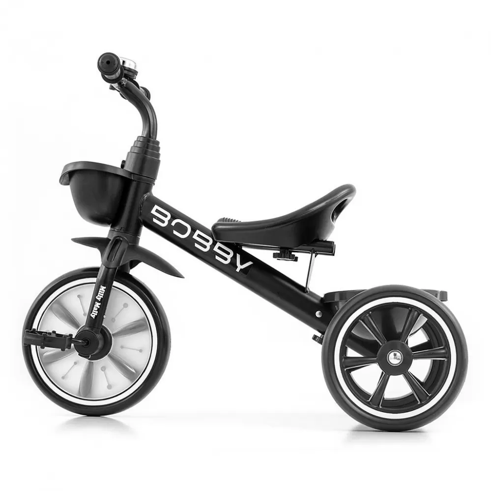 Tříkolka BOBBY byla vytvořena s ohledem na pohodlí a bezpečnost batolat a komfort rodičů. Ideální řešení pro aktivní batolata, která nudí jízda v kočárku. Bobby je stabilní a bezpečná tříkolka pro vaše dítě s nadčasovým designem a pohodlným tvarovaným sedadlem. Přední kolo je zajištěno tak, aby nedošlo k zachycení nožiček vašeho dítěte, když náš malý cyklista šlape do pedálů. Řídítka kola jsou odnímatelná pomocí tlačítka na přední straně řídítek.