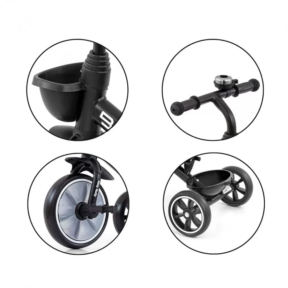 - 2 košíky, jeden na řídítkách a jeden v zadní části kola na hračky