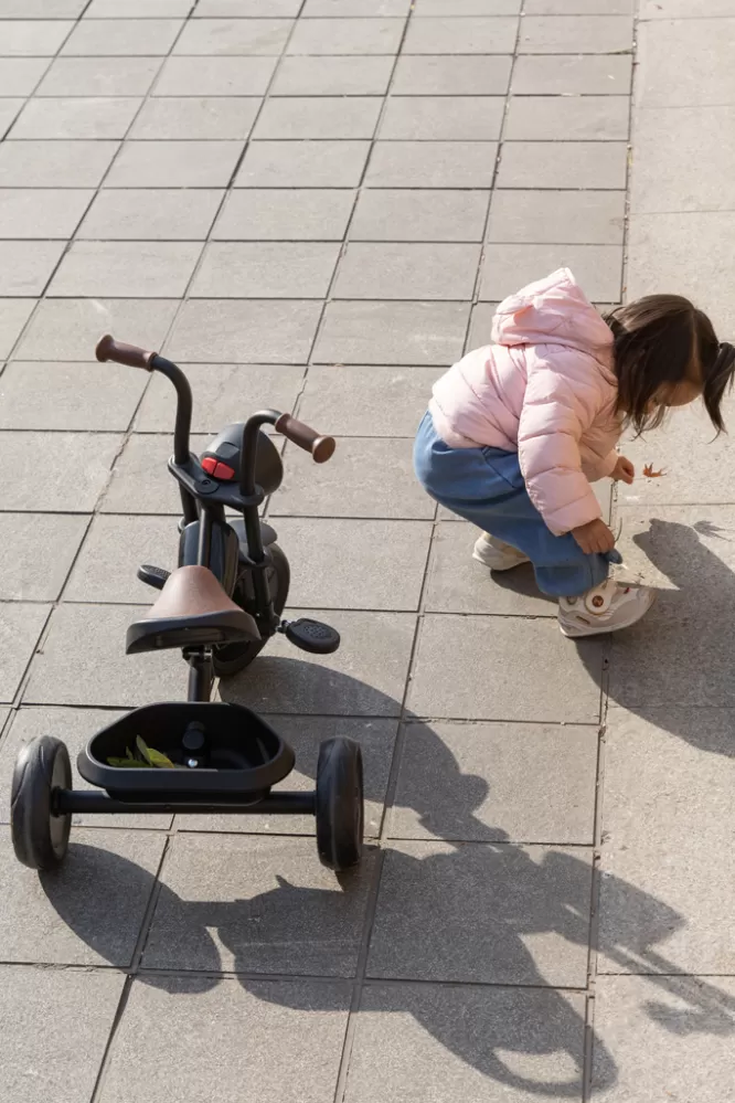 - Přenosná rukojeť: Tříkolka je vybavena praktickou rukojetí za sedadlem, která usnadňuje přenášení tříkolky, když není v používání.
