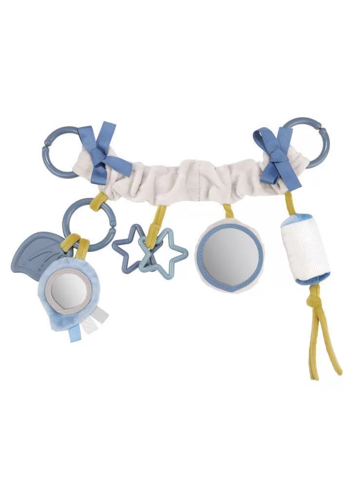 Závěsná hračka v motivu PASTEL FRIENDS je vhodná pro děti již od 0 měsíců. **Vlastnosti:** - hračka má dvě možnosti uchycení a lze jí umístit na kočárek, autosedačku nebo postýlku - různé textury materiálů stimulují hmat dítěte - zvonění a šustění materiálů upoutává dětskou pozornost - vícebarevné stuhy povzbuzují dítě, aby je chytilo - elastická kousátka zklidňují dásně dítěte při růstu zoubků
