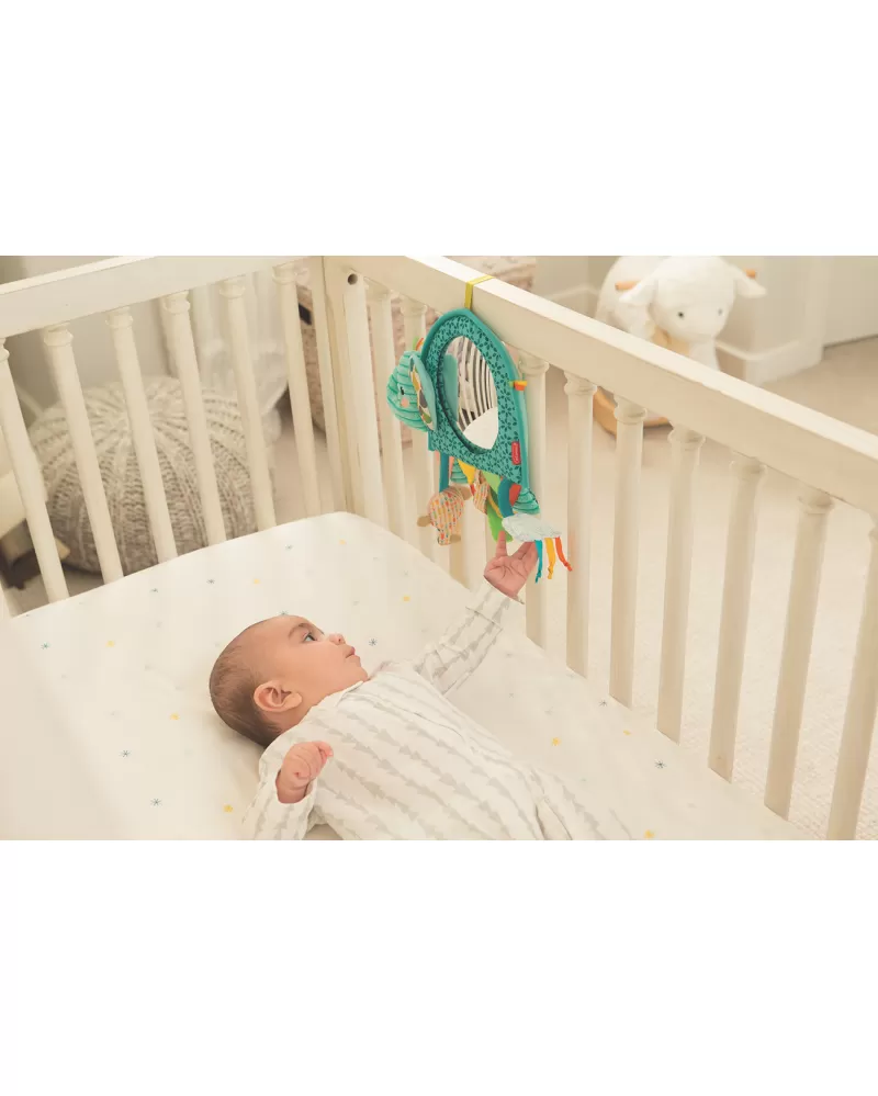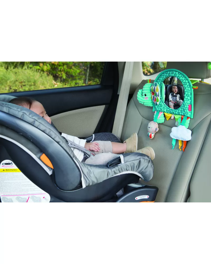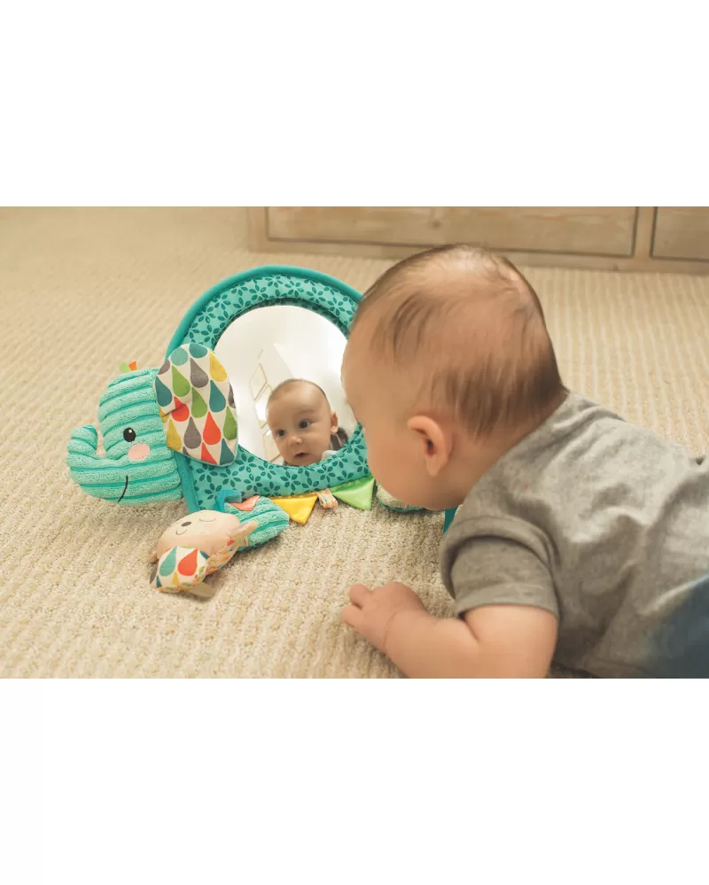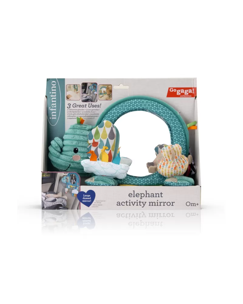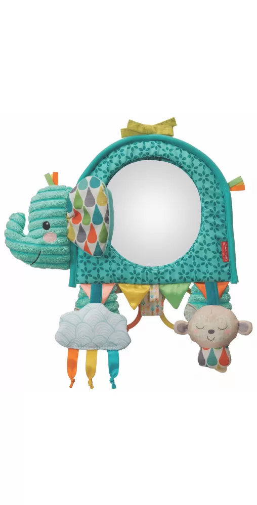 Závěsná hračka v podobě usměvavého slona s bezpečným zrcátkem nabízí množství různých aktivit ke zkoumání a pozorování. Hračku je možné s pomocí kroužků zavěsit např. na postýlku či do auta nebo ji postavit před dítě hrající si na bříšku na dece. Při použití v autě umožňuje velké vypouklé zrcátko rodiči sledovat dítě v autosedačce umístěné proti směru jízdy na zadním sedadle.
